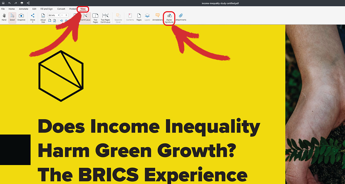 Go to "View" > "Digital Signatures" to unlock the file for personal use.