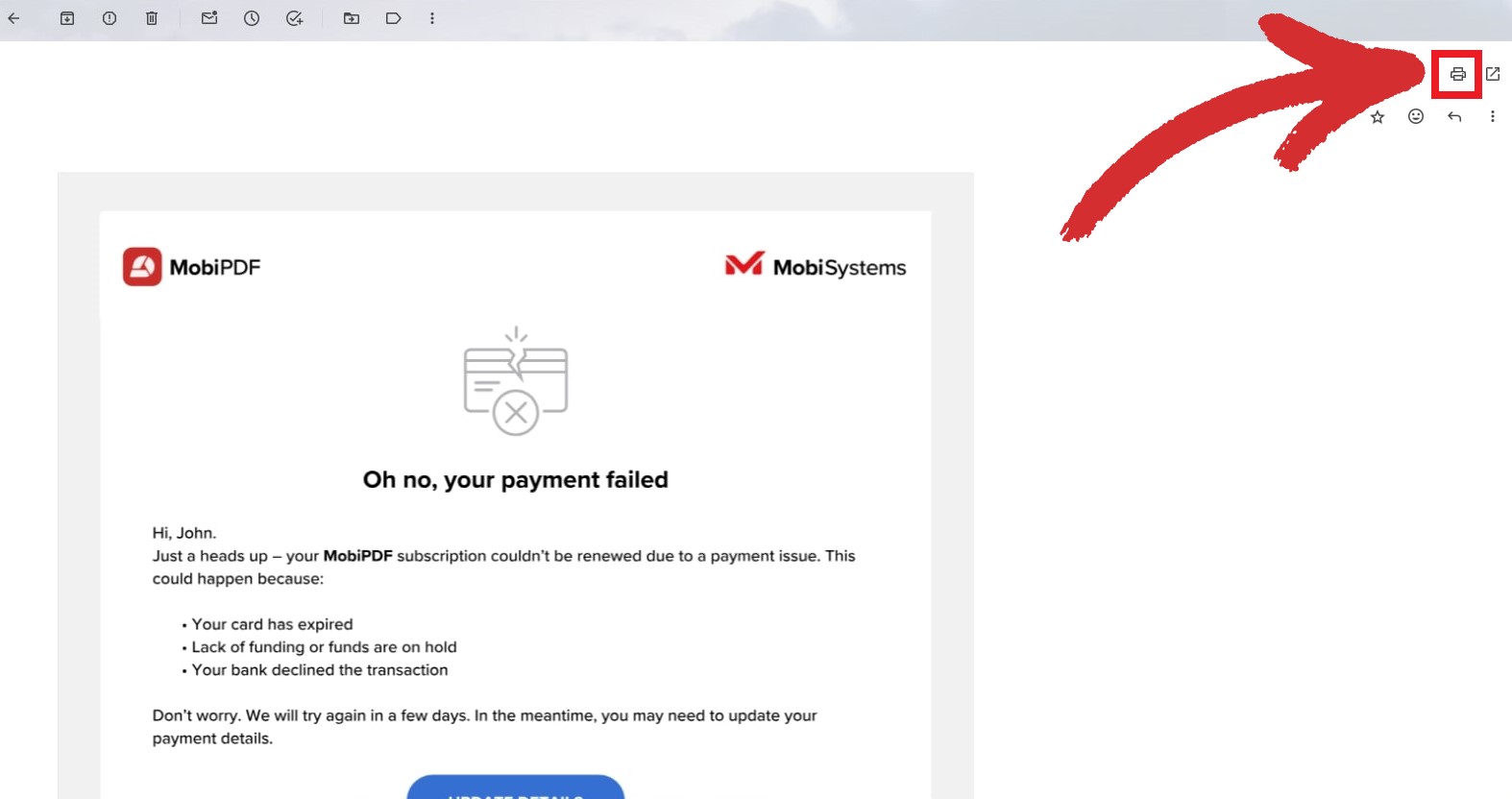 1. Open the email you wish to download as a PDF.